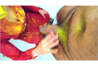 Watch this Indian couple's chuda chudi. The horny husband teases his wife at the festival of Holi. He gets a blowjob from his wife. After that, the husband fucks her and cums on her.